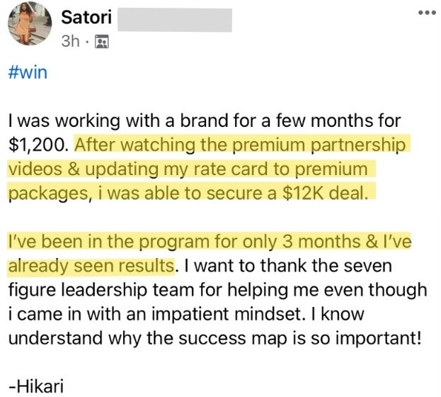 After watching the premium partnership videos & updating my rate card to premium packages, I was able to secure a $12k deal. I've been in the program for only 3 months & I've already seen results.